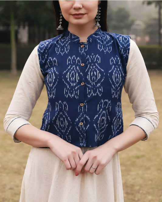 Navy Blue printed long kurta, Sleeves separate attatch D2034